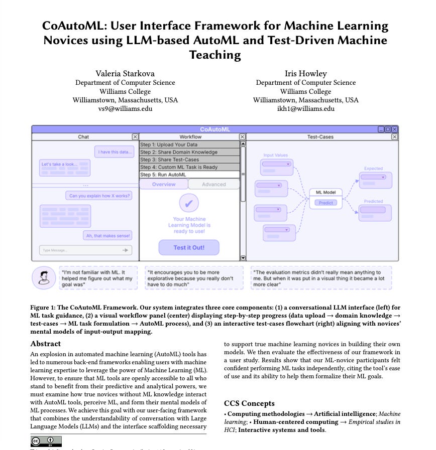 Starkova, V. & Howley, I. (2026). CoAutoML: User Interface Framework for Machine Learning Novices using LLM-based AutoML and Test-Driven Machine Teaching. IUI '26, Paphos, Cyprus. doi.org/10.1145/3742413.3789153